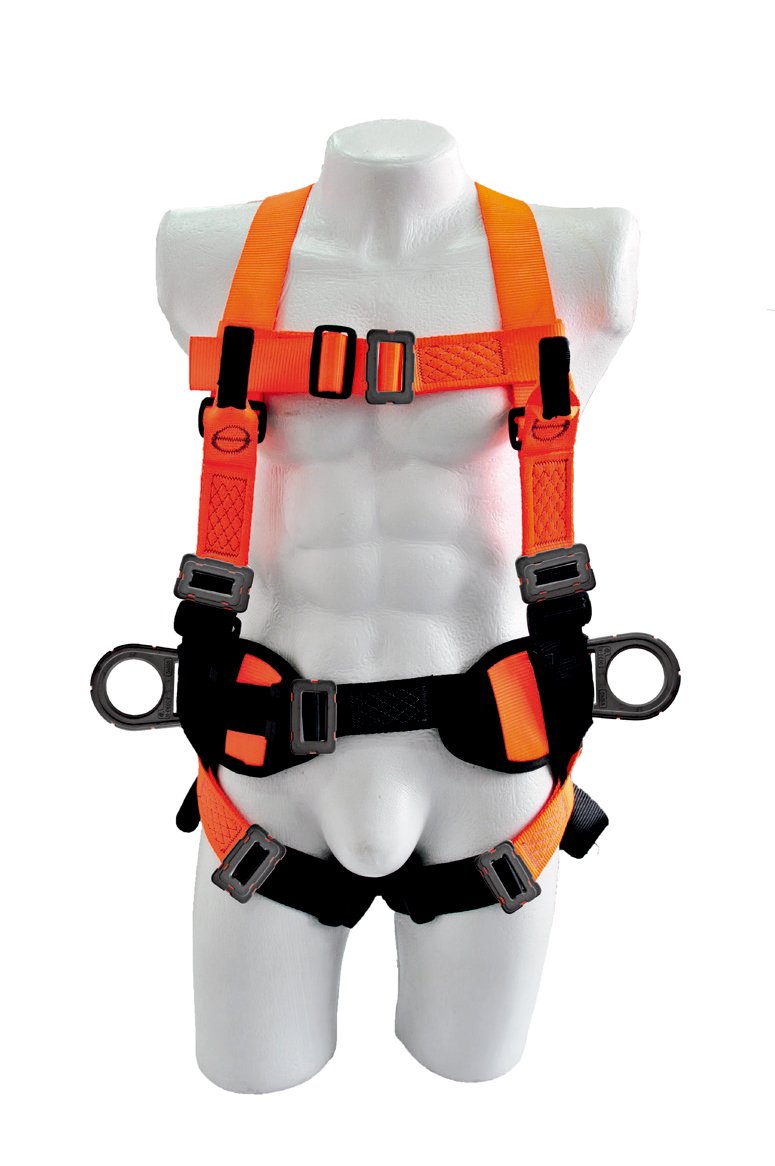 Arnés Multipropósito Dieléctrico, con soporte lumbar tipo H, en reata poliéster, de 4 argollas Dieléctricas 4000 voltios, HD (Alta Durabilidad y Anti oxidación)Sectores y Usos: Especial para sitios donde la alta oxidación es un problema, como ciudades cerca al mar, con humedad, zonas de alta oxidación.